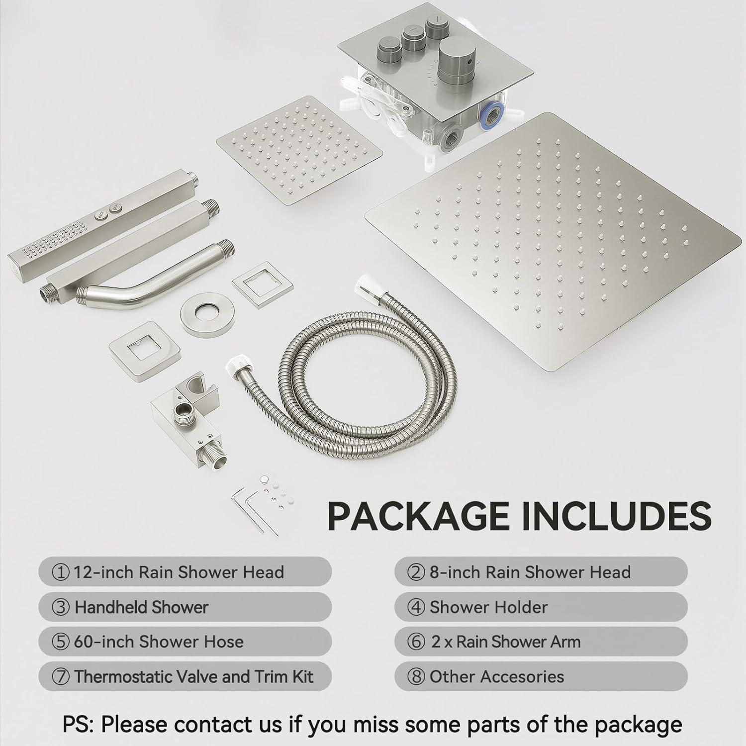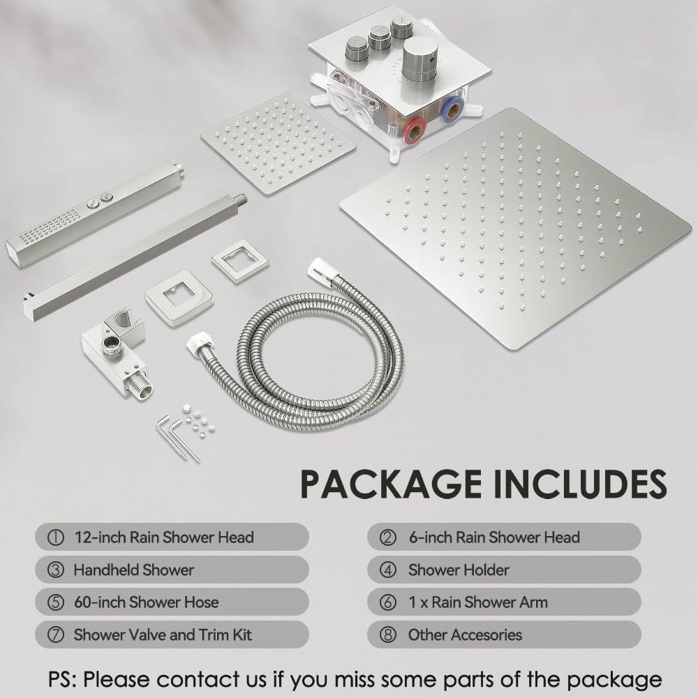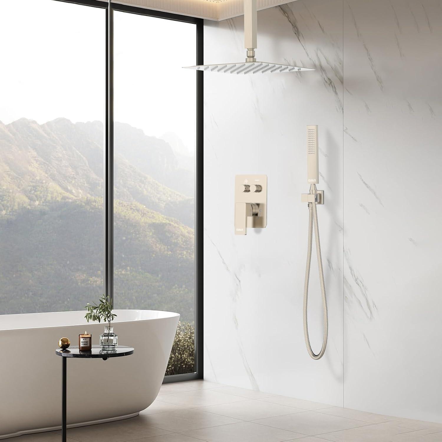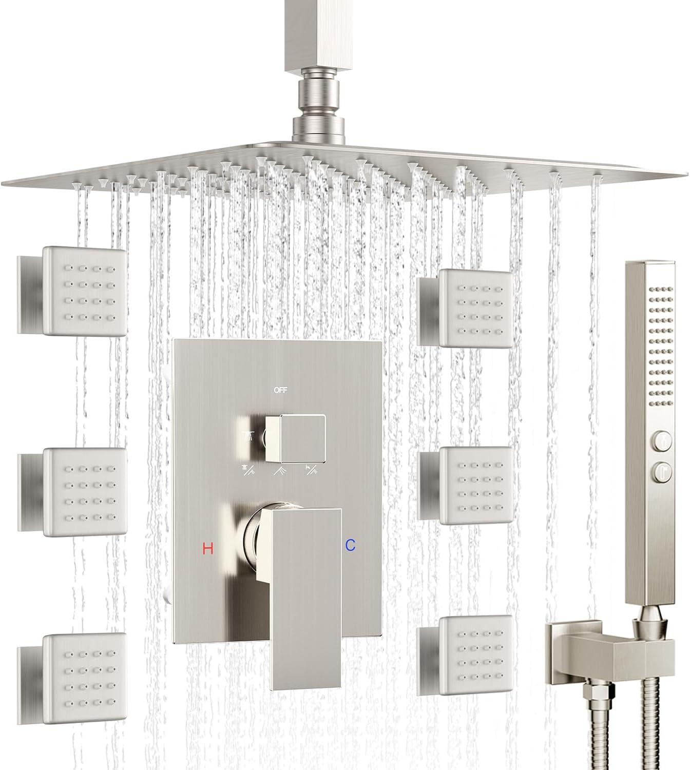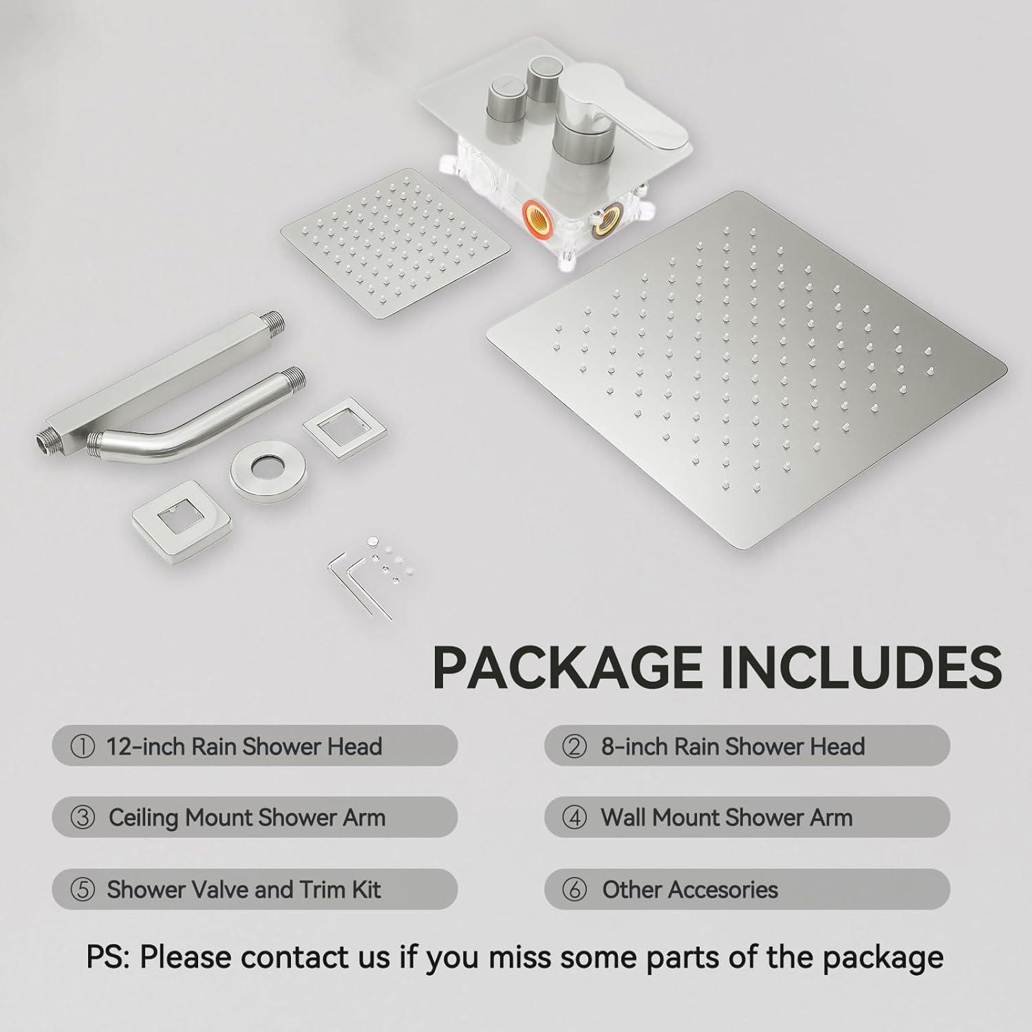 High Quality: The rainfall shower system is of all-metal construction. Composed of solid brass and stainless steel, it offers excellent rust resistance and long life.304 Stainless steel rain shower head with silicone nozzles easily cleans mineral residue and ensures that the showerhead maintains good water output over time.