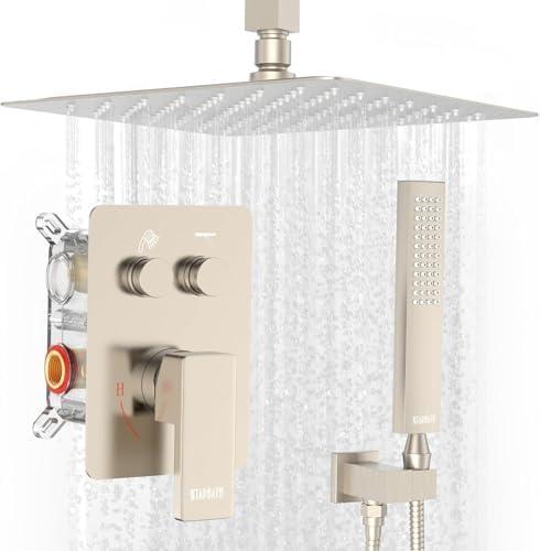 Get the Rainfall Shower System, 10 inch Wall Mounted Rain Shower Head with Handle Set, Push Button Diverter 2 Functions Simultaneous Use,High Pressure Shower Faucet Set with Rough-in Valve, Brushed Nickel(Brushed Nickel) you want at a price you can afford with our markdown sale.
