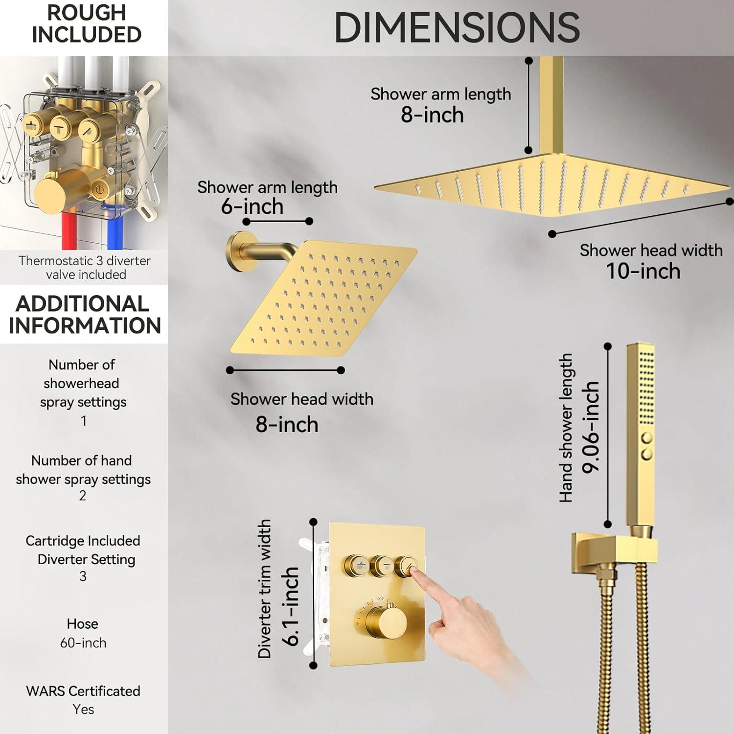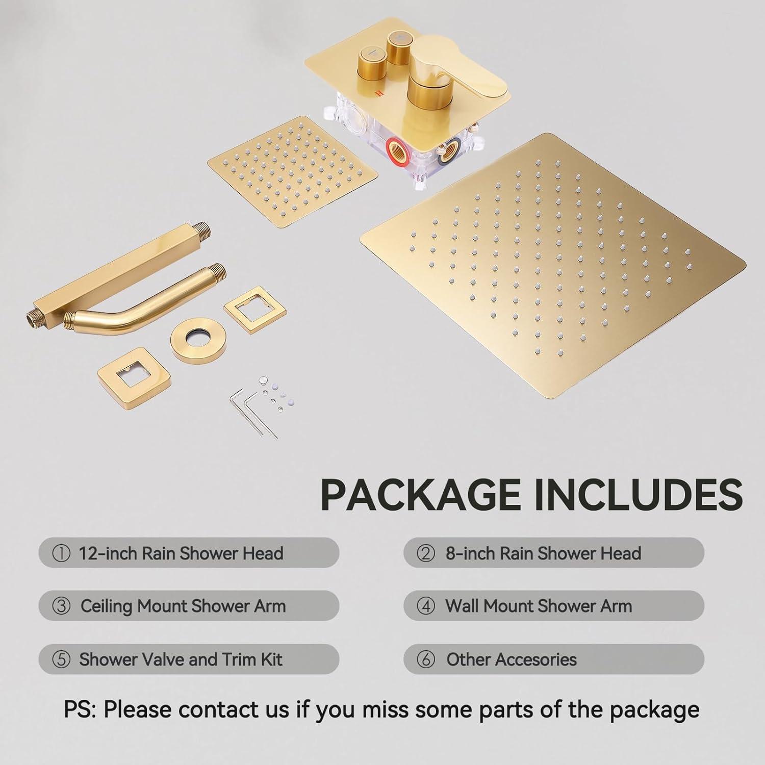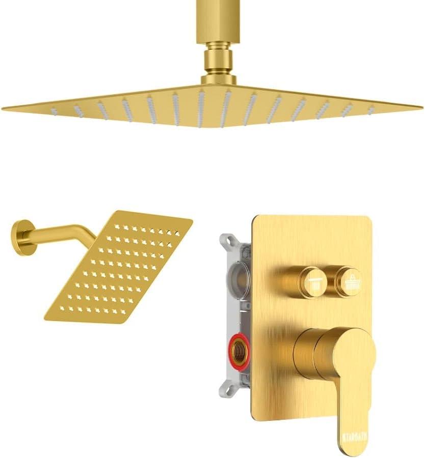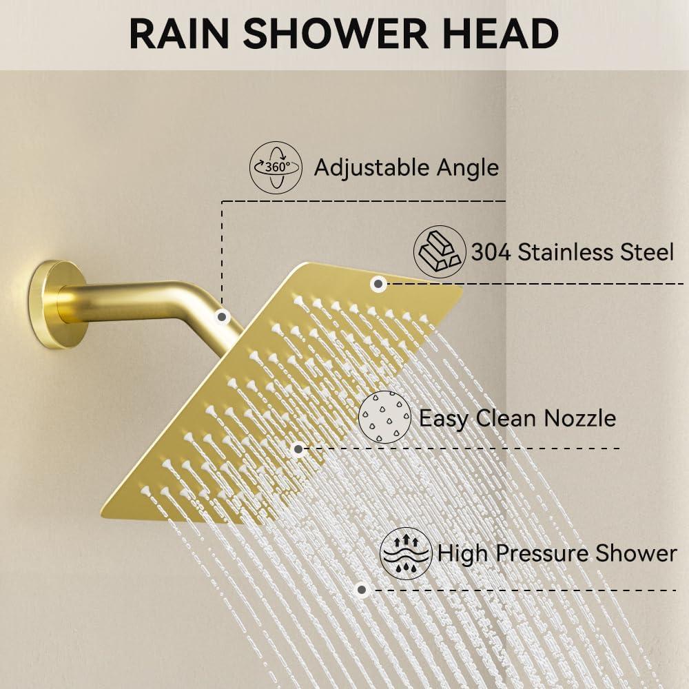 High Quality: The rainfall shower system is of all-metal construction. Composed of solid brass and stainless steel, it offers excellent rust resistance and long life.304 Stainless steel rain shower head with silicone nozzles easily cleans mineral residue and ensures that the showerhead maintains good water output over time.