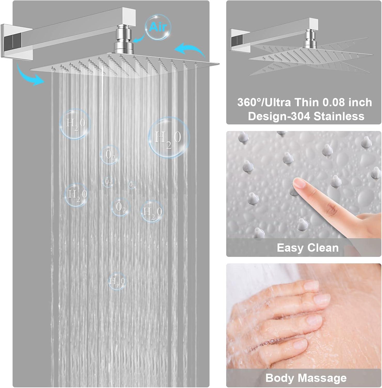 【ADJUSTABLE ANGLE PARTS】: 10'' rain shower head, handheld sprayer, and body jets of this rainfall shower system are upgraded with the angle-adjustable feature, which can provide you the ideal shower angle. 6pcs shower body jets help you relaxing your muscle, you can enjoy a Full-Body Shower.