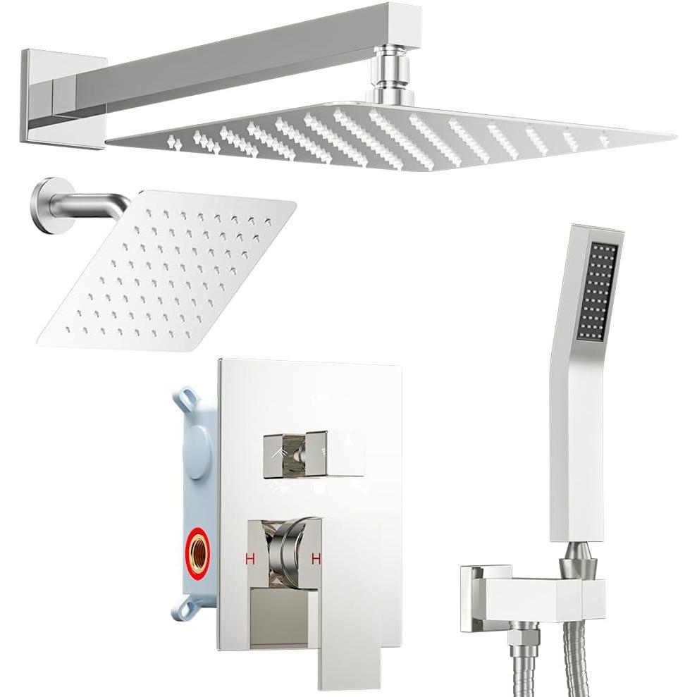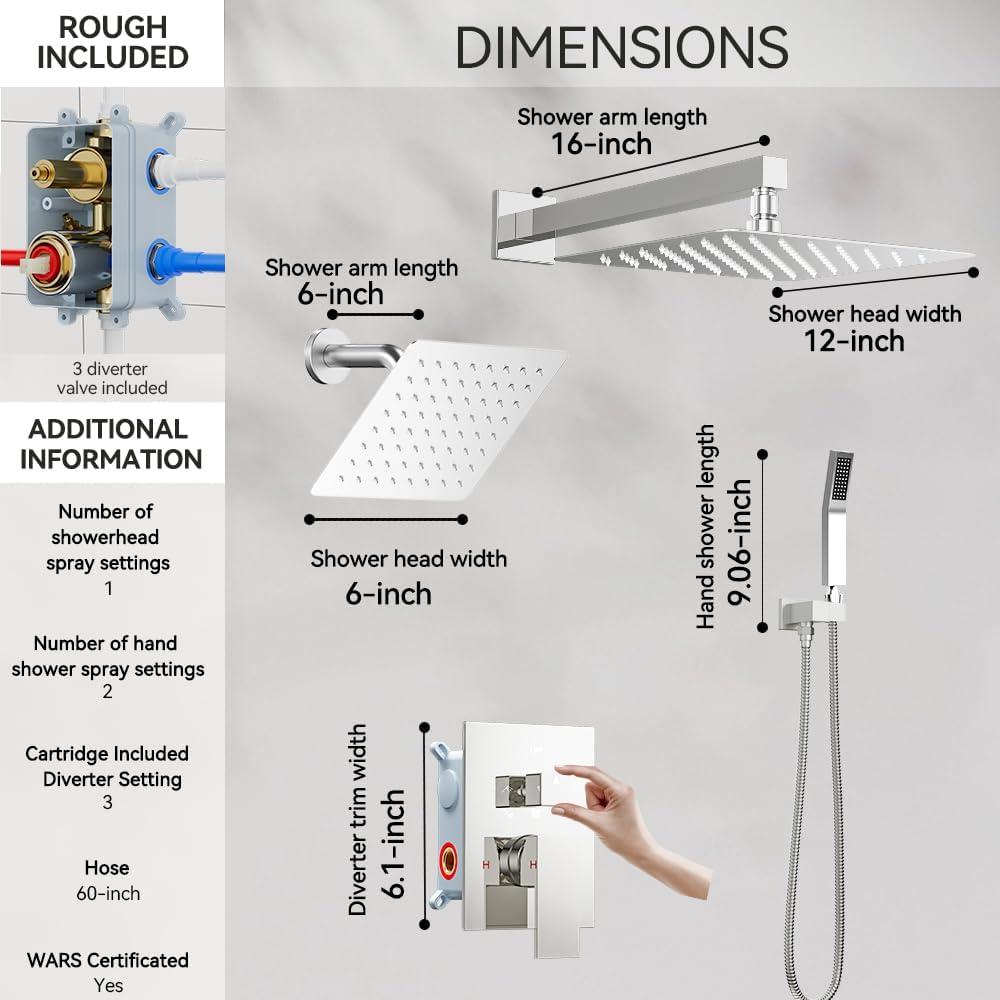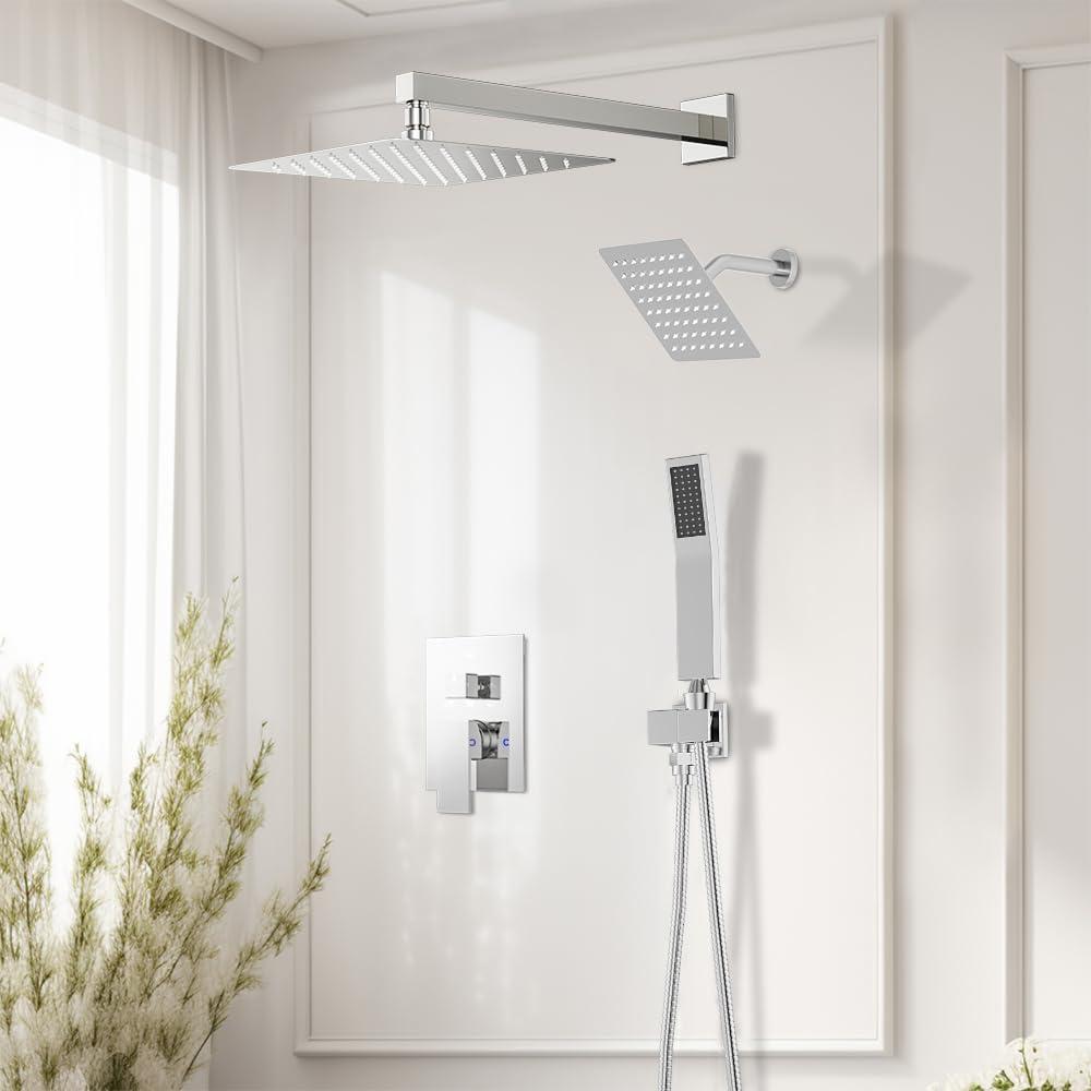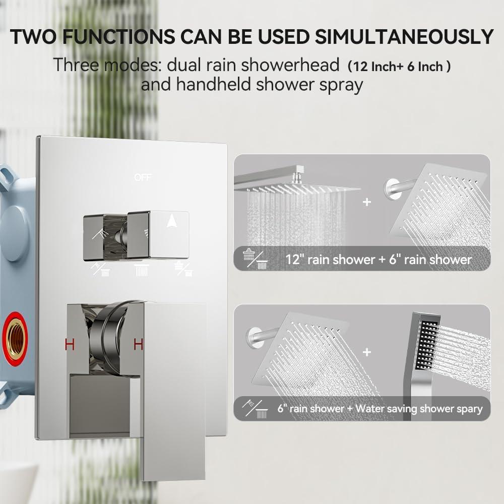 Enjoy the shower time with your Lover:Our dual head shower system includes a 12-inch and 6-inch rain showerhead, along with a water-saving handheld spray, the large shower spray help you showering no more freezing in the corners and no more perilous side-switching.Users have the ability to activate three modes and utilize dual showerheads, including a handheld spray, according to their preferred showering preferences
