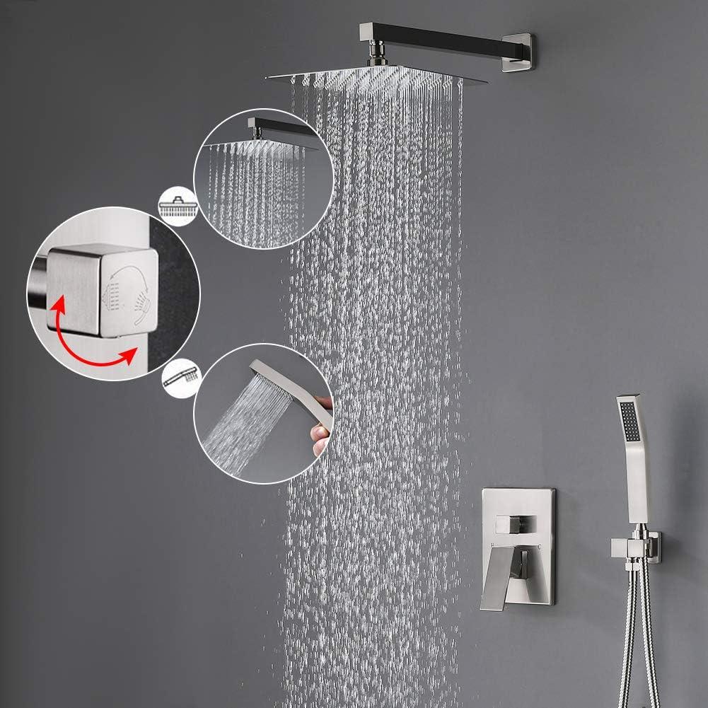 EASY OPERATION: Single lever design for effortless flow and tempreture control. You can switch the knob to open rain shower head or handheld shower head as you like (can not both together);