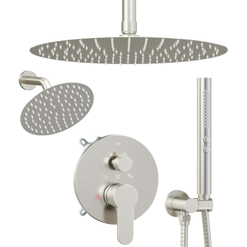 imageShower Faucet Sets Shower Systems 126quot Dual Rain Shower Head with Handheld Spray Rainfall 3 Way Shower Valve with 5 Diverter and Trim Kit Complete Brushed NickelBrushed Nickel