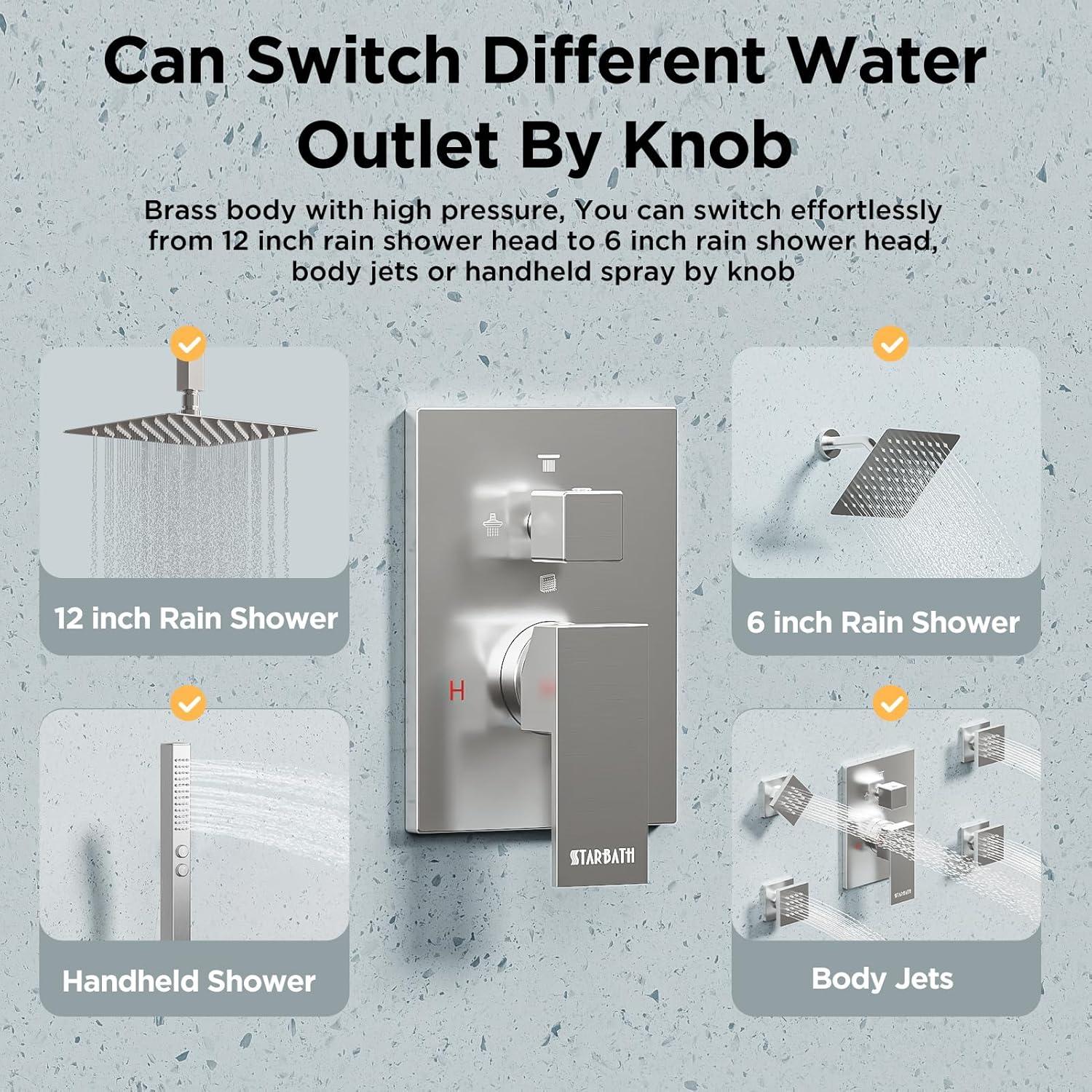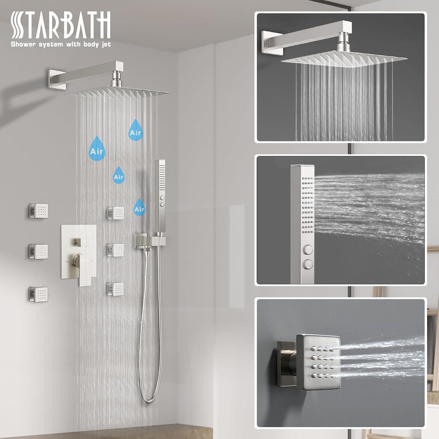 Easy Installations & 24/7 Help: The detailed instructions and all necessary pieces are included in the package, allowing a plumber to install this modern shower faucet set easily by following the provided instructions; The replacement parts readily available for valve. In Starbath, we strive to offer you a 5-star bathing experience with our 4 spray shower system. If you have any questions or concerns about our products, please contact us via the Amazon message system or email