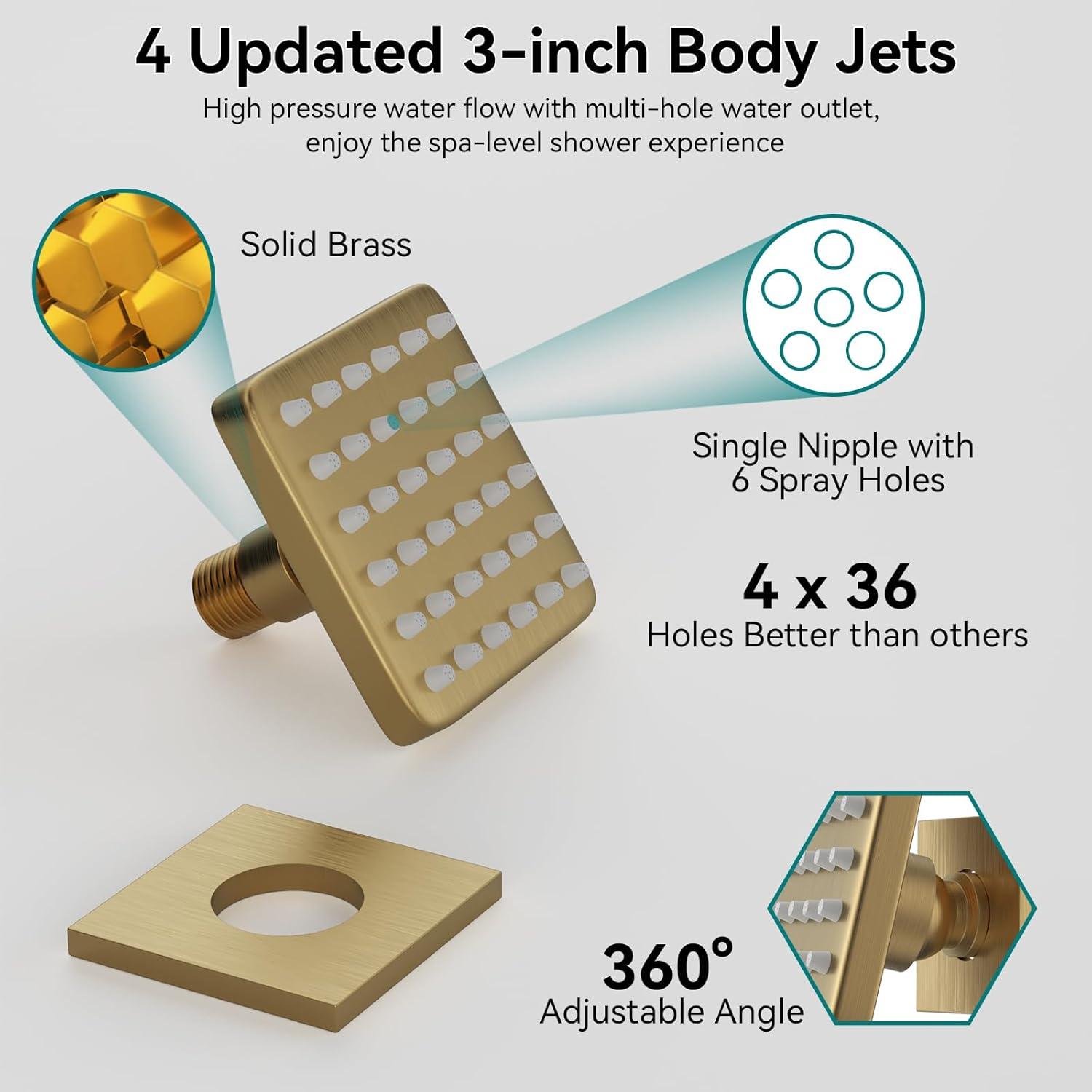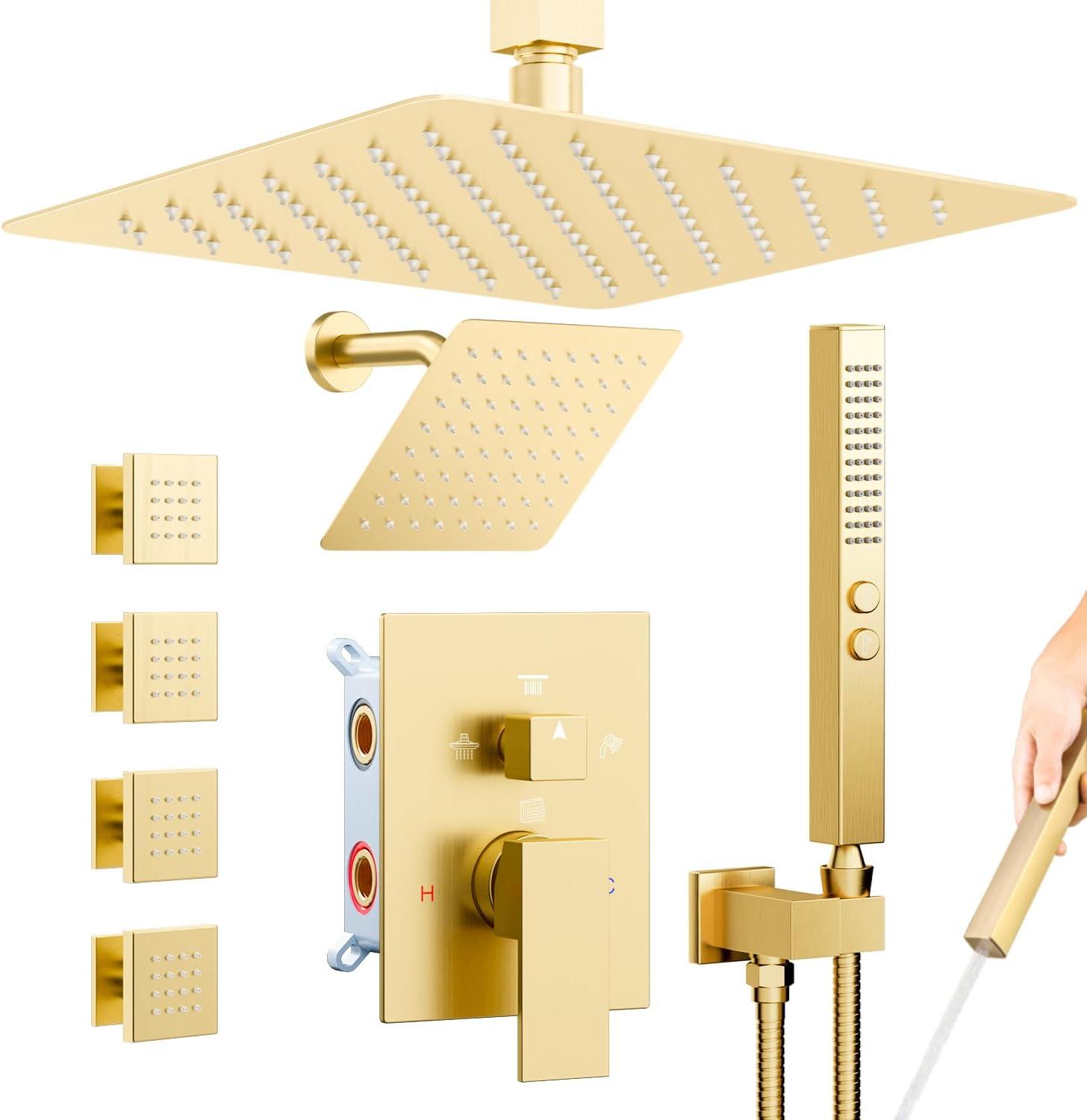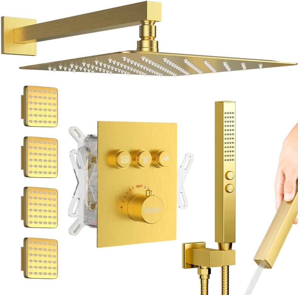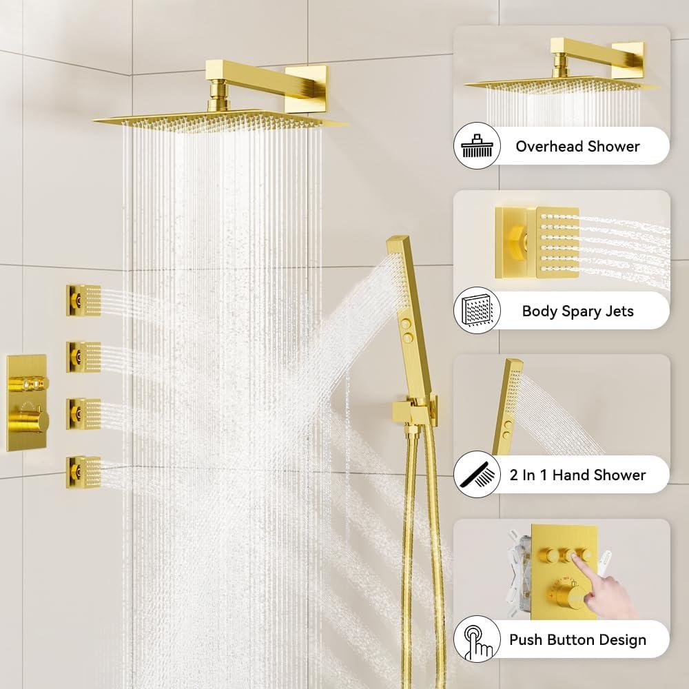 imageShower System with 4 Body Spray Jets STARBATH 4 Way 12  6quotRainfall Shower Head with Handheld Combo Wall Mounted Shower Jets System in Wall Shower Faucet Set Brushed GoldMatte Black