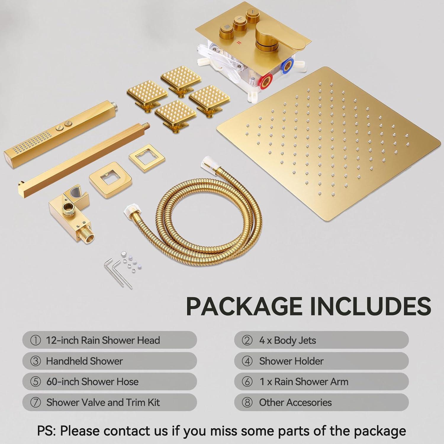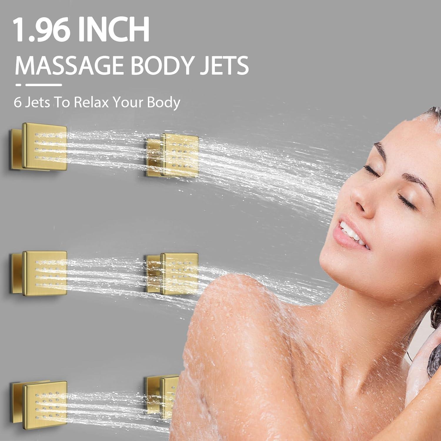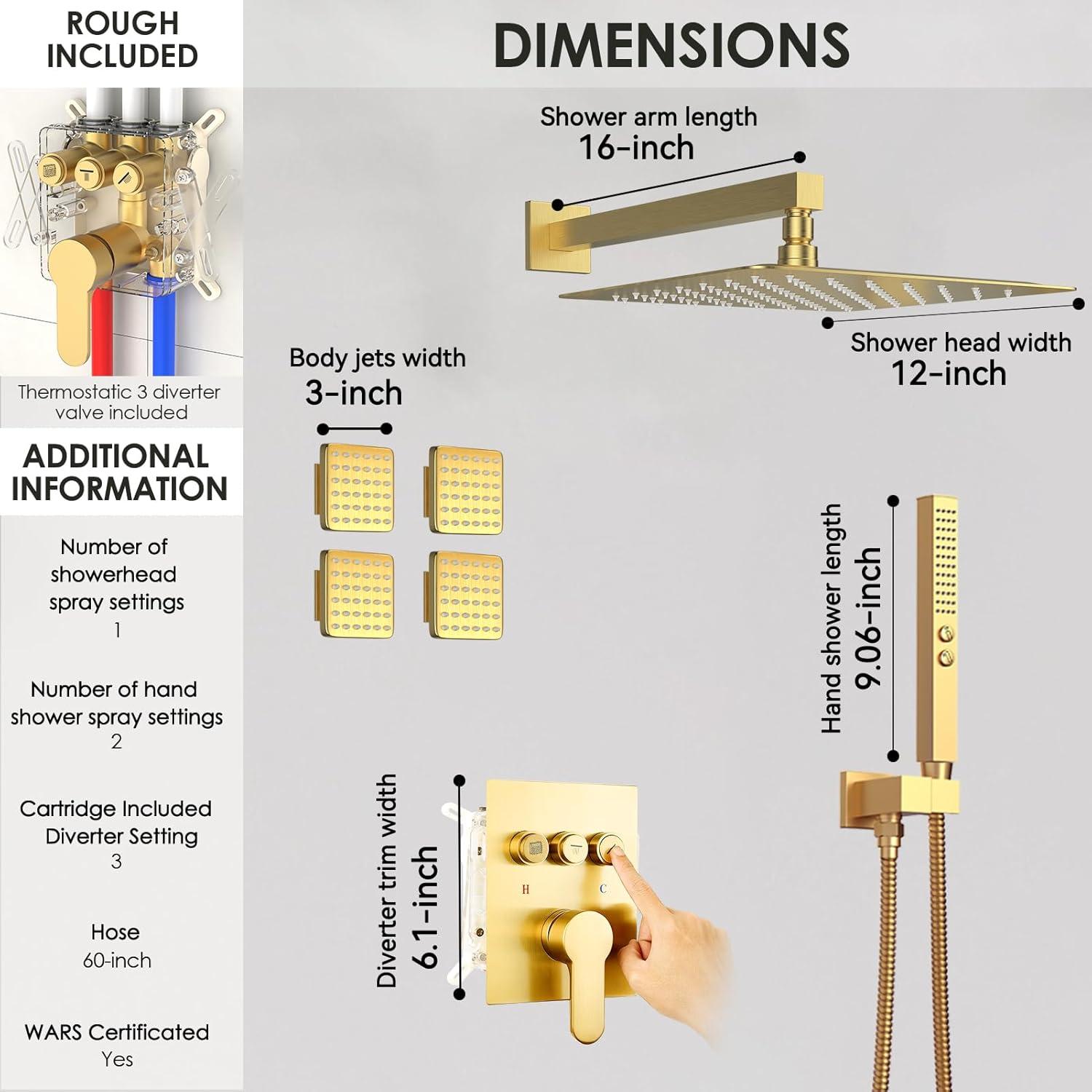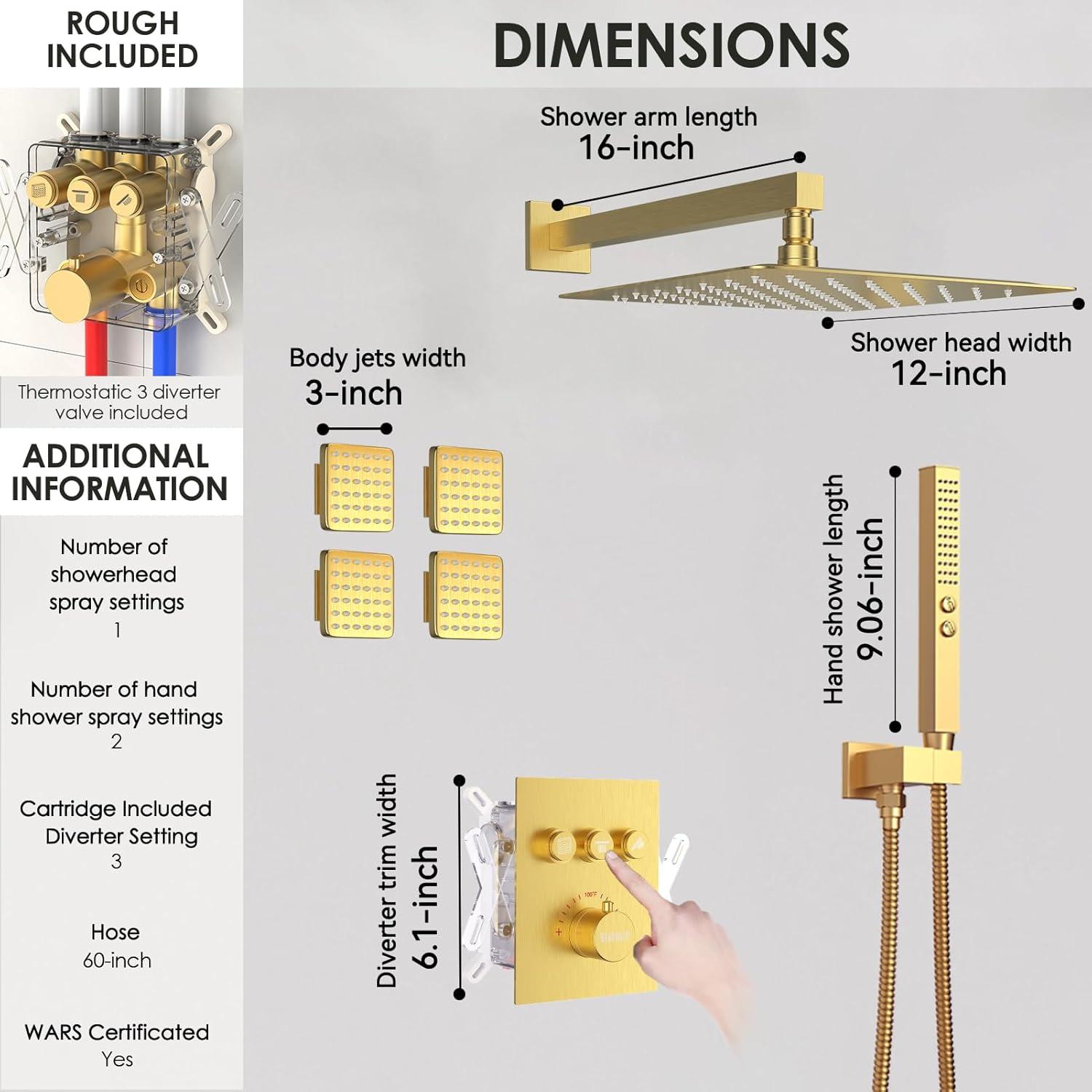 imageShower System with 4 Body Spray Jets STARBATH 4 Way 12  6quotRainfall Shower Head with Handheld Combo Wall Mounted Shower Jets System in Wall Shower Faucet Set Brushed GoldMatte Black