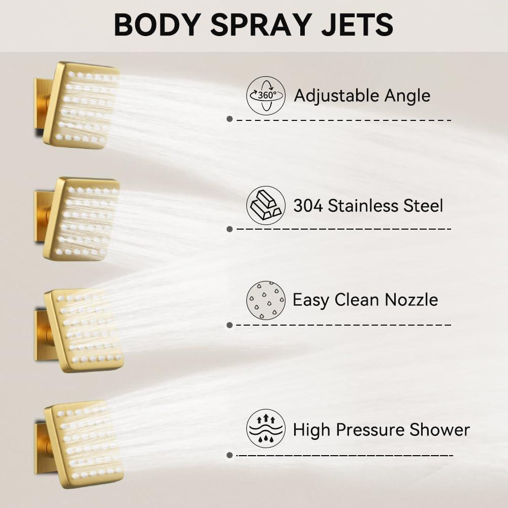imageShower System with 4 Body Spray Jets STARBATH 4 Way 12  6quotRainfall Shower Head with Handheld Combo Wall Mounted Shower Jets System in Wall Shower Faucet Set Brushed GoldChrome