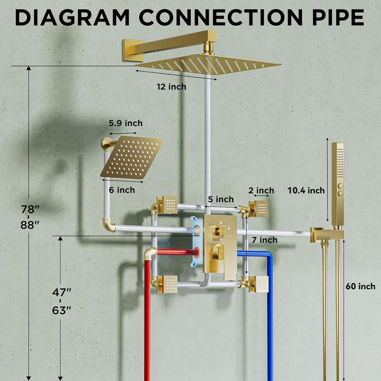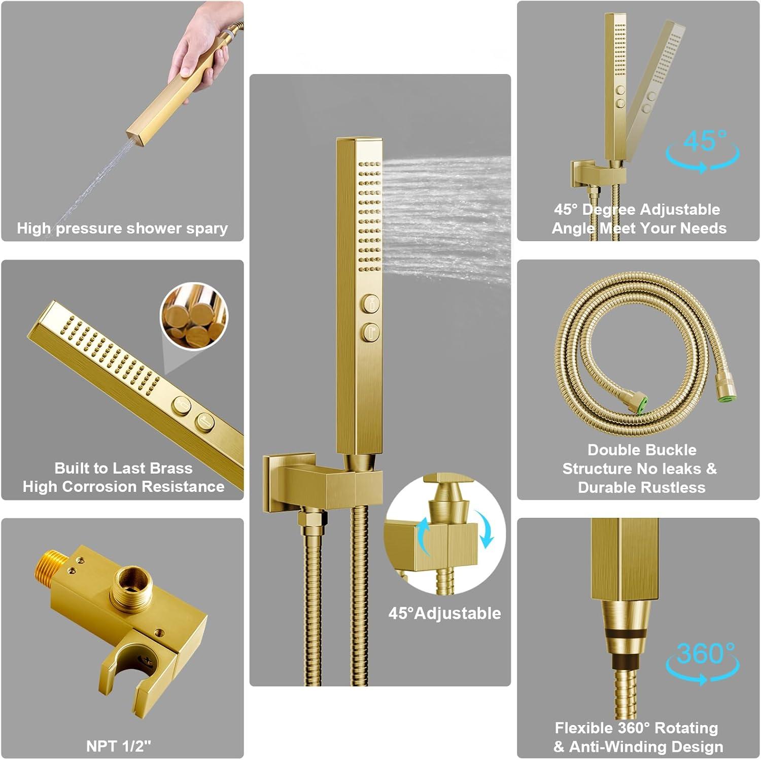 imageShower System with 4 Body Spray Jets STARBATH 4 Way 12  6quotRainfall Shower Head with Handheld Combo Wall Mounted Shower Jets System in Wall Shower Faucet Set Brushed GoldGold